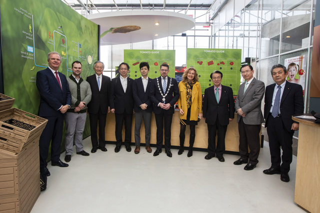 On Thursday 16 January, Tomatoworld welcomed Japanese Ambassador Hidehisa Horinouchi with members from the Japanese First Chamber and the Ministry of Agriculture. They are working in Japan on the revitalisation of agriculture and horticulture and the reconstruction of northeast Japan after the 2011 tsunami. Mayor Bouke Arends was present on behalf of Westland. He emphasised that the municipality of Westland has had a good relationship with Japan and Kochi prefecture in particular for many years.