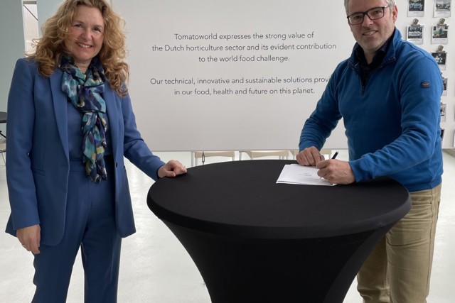 Tomatoworld and World Horti Center will join forces with the aim of putting the horticultural sector even better on the map nationally and internationally. The cooperation will be operational by jointly welcoming visitors, organising events and training courses. The two parties signed a letter of intent to this effect yesterday.