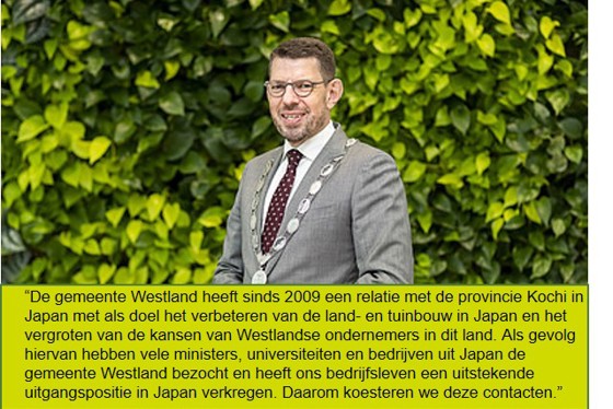 Thanks to our relationship with Kochi and Japan's growing need to modernise agriculture and horticulture, the Japanese Cabinet sees the Netherlands as a model. Westland companies can benefit from this.